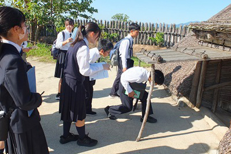 九州国立博物館ではさまざまな時代の収蔵品が展示されていますが、授業で学習した弥生時代・古墳時代を中心に見学しました。土器や農具など、実物を見ることで教科書だけでは分からない学びを得ました。