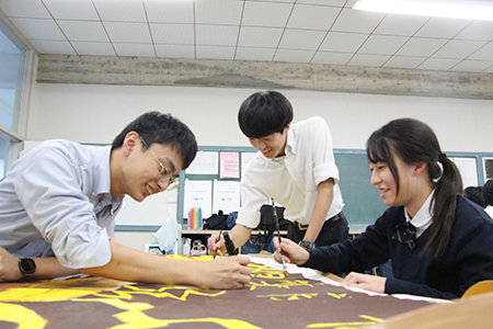 生徒会主体の競技も実施予定です。企画から準備まで生徒会メンバーで運営します。生徒会室を覗くと、当日使用する看板を手作りしていました。