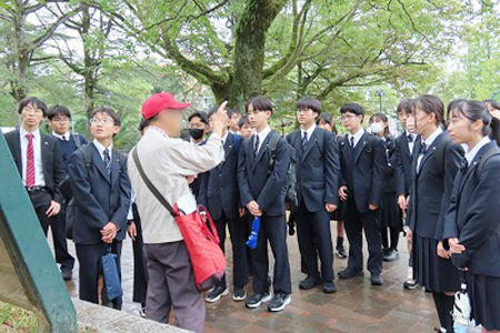 班に分かれ、碑巡りへ。長崎の街中に残る戦争や原爆の傷跡を実際に見ながら、ガイドの方から貴重なお話を聞きました。