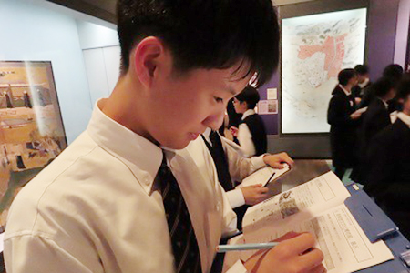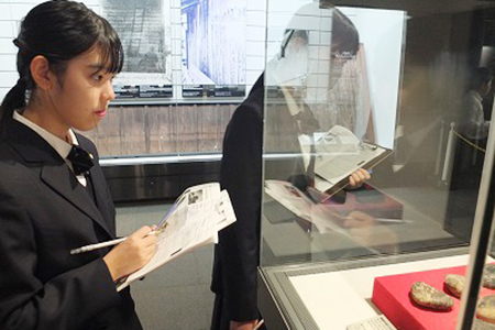 長崎歴史文化博物館では、海外交流の歴史を学びました。海外との交流が盛んに行われる貿易地だった長崎の歴史をメモを取りながら見て回りました。