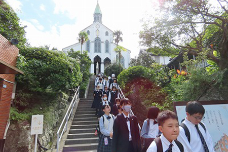 大浦天主堂、グラバー園を訪れました。大浦天主堂では美しいステンドグラスに魅了されながら、長崎のキリシタンの歴史について学びました。