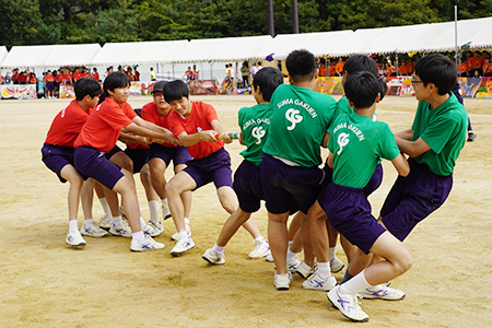 S1(中3)学年種目「棒引き」では、スタートダッシュと諦めない気持ちが肝。粘り強い接戦が繰り広げられ、応援にも熱が入りました!