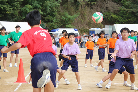 中学3学年による「ドッジボール」は、オリジナルルールで攻守がせめぎ合う熱戦を繰り広げました。