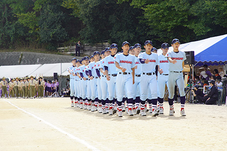 各部活動がユニフォームなどを着て参加する「運動部クラブ行進」。凛々しい姿でトラックを行進しました。