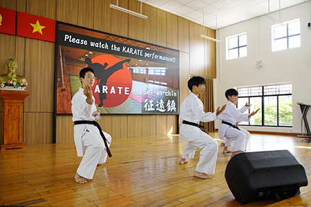 プレゼンの中では、空手や弓道の実演も。昨年の体育祭で踊ったソーラン節も披露し、迫力ある演技で会場を盛り上げました。