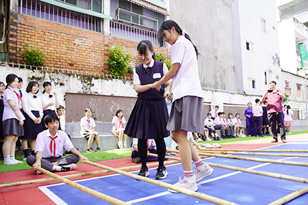 個別交流では、グループに分かれバディと一緒にアクティビティを。リズムに合わせて竹と竹の間でステップを踏むバンブーダンスなど、ベトナムならではの遊びを楽しみました。