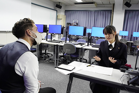 決勝進出者にはNTE教員による個別指導が実施されました。決勝に向けて、単語の発音や表現の仕方など細かな部分をブラッシュアップし、スピーチの完成度を高めていきます。