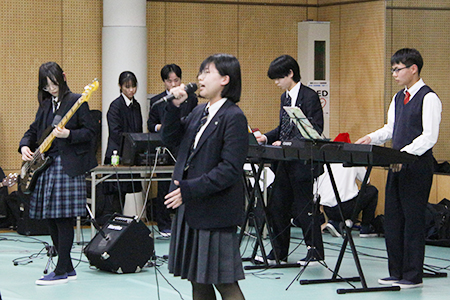 クリスマスパーティーでは、軽音楽部やハンドベル部による演奏が披露され、会場全体を巻き込んで手拍子や歓声が広がりました。