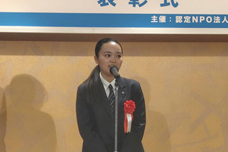 全国から寄せられた21,854通の応募作品の中で、高校生部門にて入賞し授賞式に参加しました。応募1作品につき給食2人分が寄付されるこのコンテストに、本校では毎年継続して取り組んでいます。
