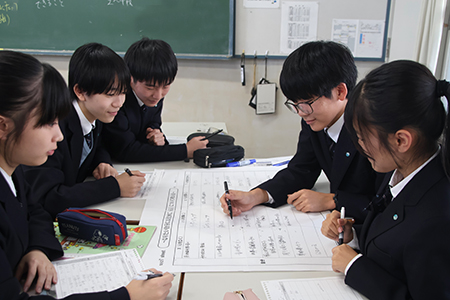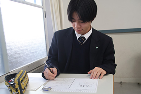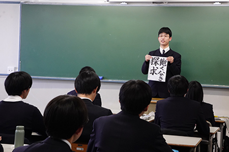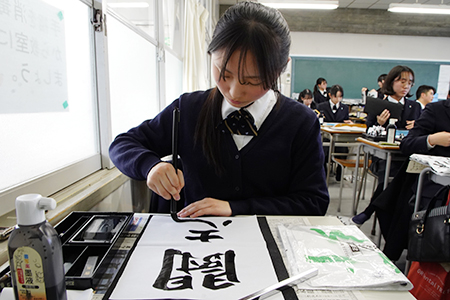 完成した書き初めはクラスで発表。生徒それぞれ個性あふれる書き初めが完成し、新年のスタートを切りました。