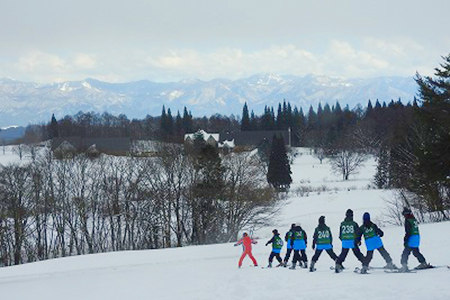 壮大な黒姫高原の自然のなか、3日目のレッスンがスタート。昨日行われたスキー講話の内容を思い出しながら、実践に落とし込んでいきます。