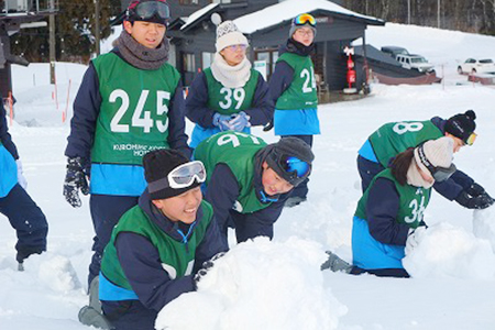 午後、J1生は雪上レクリエーションを実施。班ごとに雪で作品を作ることがお題。雪だるまやかまくらなど、班で協力して雪の作品を完成させました。