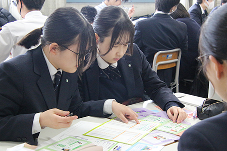 V1・K2(高2)学年では、金融教育として、家庭科の授業で生活設計と家庭管理について考える「マネープランゲーム」を行いました。ゲームを通して楽しくお金について学びながら、お金に関する正しい知識や将来の資産形成についても考えていきます。