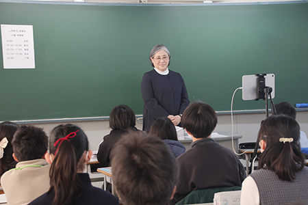 初めに理事長からの話がありました。あいさつの大切さ、受験が終わっても毎日少しでも計算などを続けること、中学の学習の楽しさを知ることなど、を伝えました。