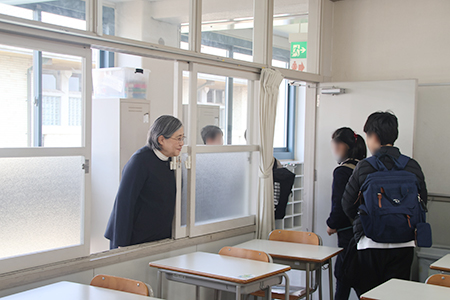 保護者は保護者控え室での待機もできますが、教室や廊下から授業を見学もできます。