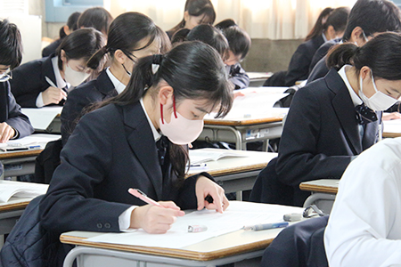 1年を締めくくる定期考査。生徒たちは真剣な表情でいつも以上に集中して問題に取り組んでいました。