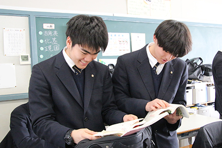 休み時間にはクラスメート同士で次の試験内容を確認し合う姿が見られました。今年度最後の定期考査を良い結果で締めくくれるよう、最終日まで全力を尽くします。