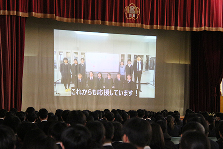 各部活動からのビデオメッセージも上映されました。それぞれの思い出を胸に制作された映像に、これまでの思い出がよみがえります。先輩一人ひとりに向けて、感謝の思いを伝えました。