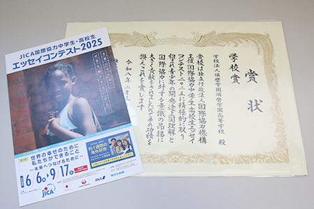 「JICA国際協力中学生・高校生エッセイコンテスト2025」において、本校が学校賞を受賞しました。