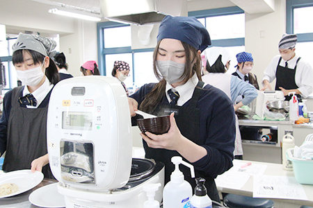 ピラフづくりは、材料を炊飯器に入れて炊き上がりを待ちます。炊き上がり後、蓋を開けると、ふわっと広がるおいしそうな香りに思わず笑顔がこぼれました。