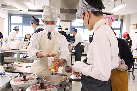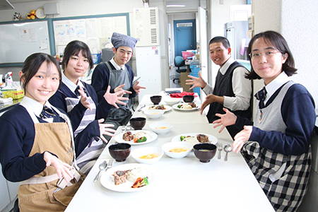 4品同時の調理でしたが、あっと間に完成!盛りだくさんな内容でしたが、班で協力しながら段取りよく調理を進めることができました。