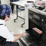 定期考査が終了し、K2・V1(高2)学年は調理実習を行いました。今回の授業の目的は「ひき肉の特性を理解すること」「オーブン料理を作ること」「短時間調理に挑戦すること」の3点。これらを学ぶために、ミートローフ、ピラフ、コーンスープ、フルーツポンチの4種のパーティー料理作りに挑戦しました。
