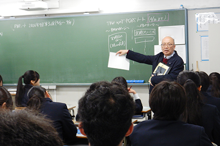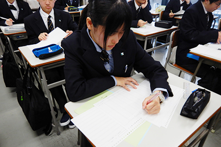 K1学年では入学して初めてのPMTMというこで、学年部長からPMTMの意義を初めに伝えました。実際にどのように書くかも担任からレクチャーしていきます。
