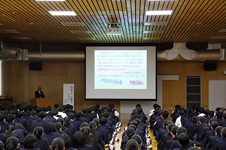 4月23日(木)、兵庫県警察本部神戸西部少年サポートセンターの方をお招きし、J1(中1)生とK1/S2(高1)生を対象に、インターネットなどにおける情報モラルについてお話いただきました。