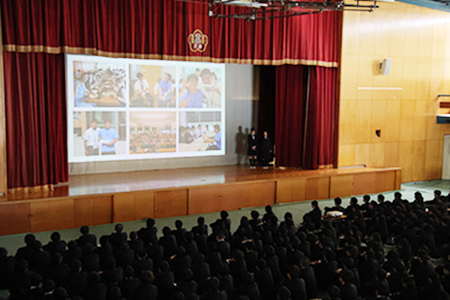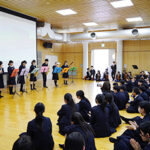 入学式後、初めての登校となった新J1(中1)、新S2・K1(高1)学年。始業式の後に新入生たちを迎える対面式が行われ、先輩たちから学校のことをたくさん教えてもらいました。
