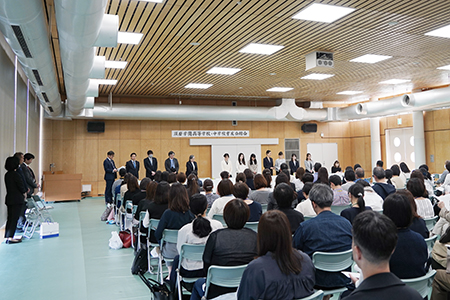 冒頭の理事長挨拶では、保護者のみなさまに日頃の感謝をお伝えし、学校運営は保護者と教員が両輪となって支えていくものであるとの考えが示されました。また、今年度学校運営ならびに法人全体としての取り組みについてのご報告をいたしました。